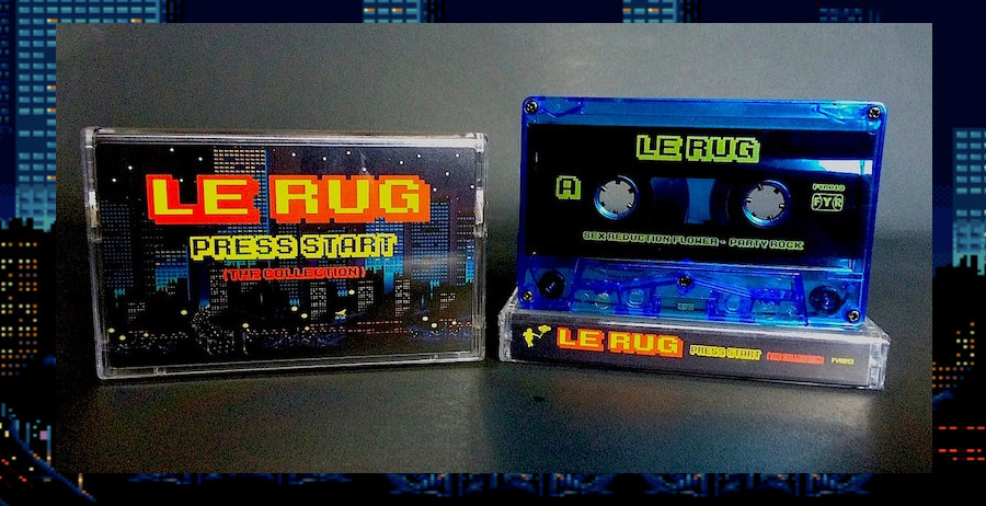 Pro-dubbed cassette tape with full-color 3-panel j-card inspired by various RPGs. This amazing collection is on a blue tint cassette with yellow ink that matches hues in the front cover art/cityscape.
