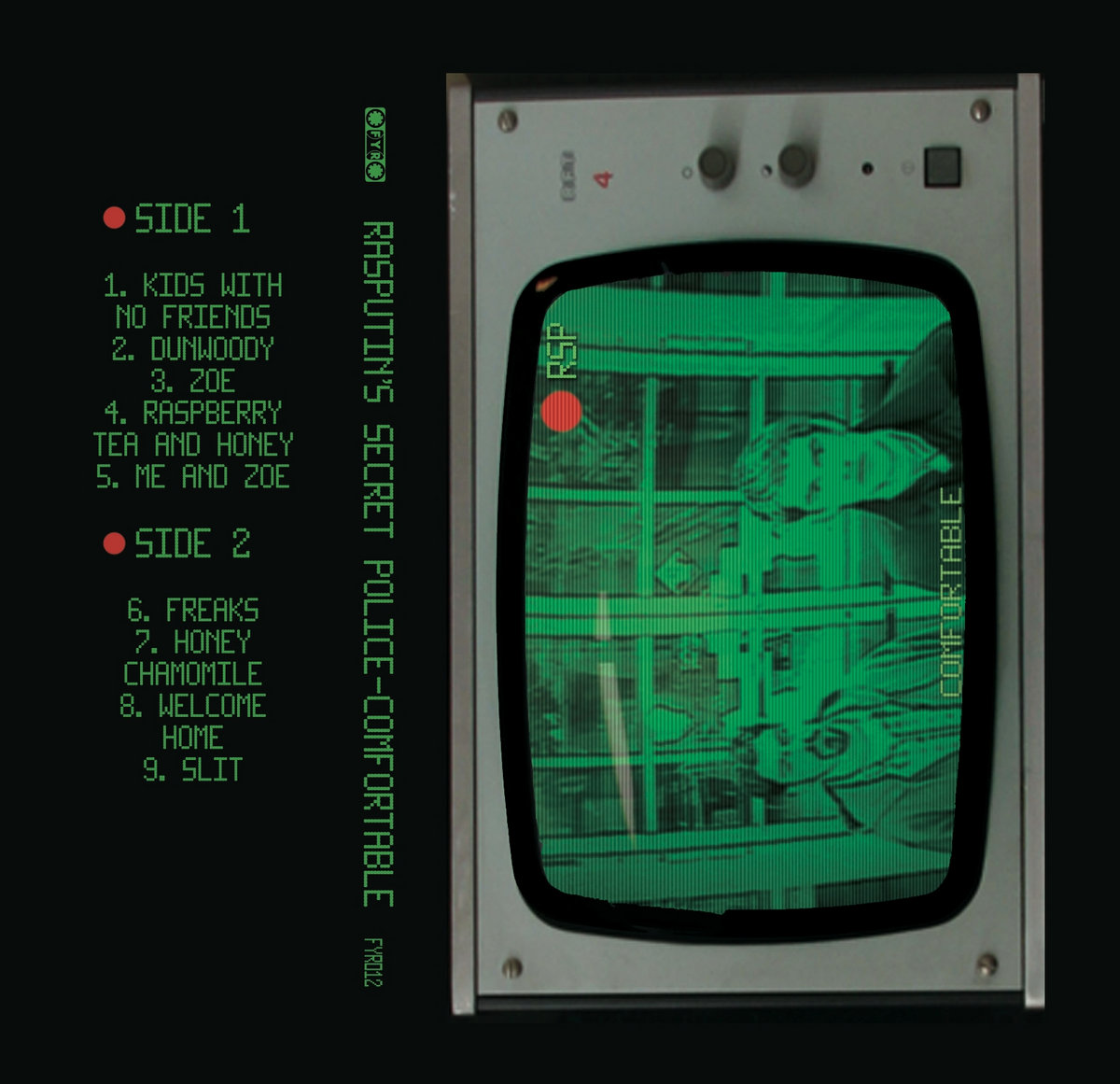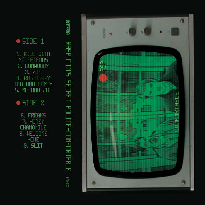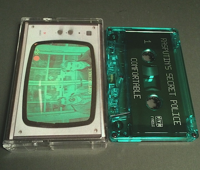 Pro-dubbed cassette tape with full-color 3-panel j-card! This green tinted cassette holds Rasputin's Secret Police's magnum opus, Comfortable, full of their signature driving guitars and muscular drumming. Only 25 copies available online! The others will be available through RSP at their live shows.